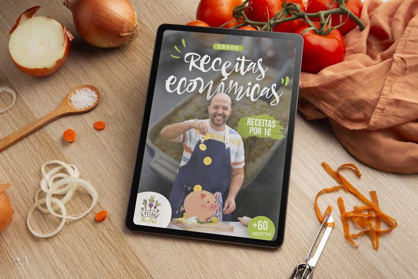 Neste ebook vai encontrar mais de 60 receitas de jantares, marmitas, pequenos-almoços e sobremesas… com o custo médio de 1€ por dose.